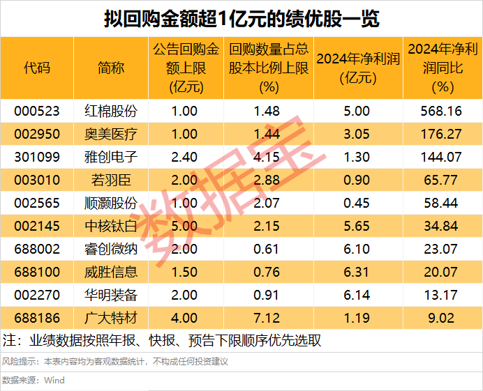 10只绩优股拟回购金额预计超1亿元