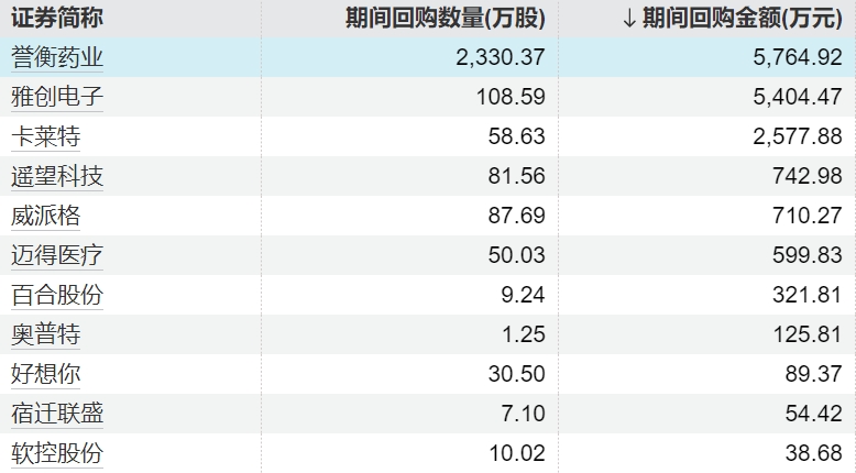 11家上市公司股票获回购,誉衡药业回购金额最高