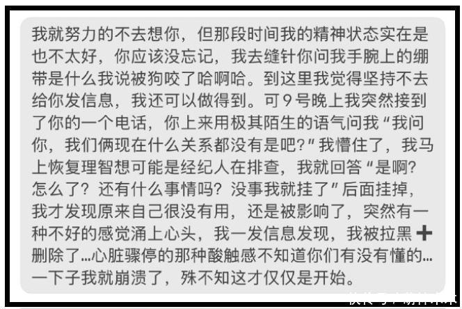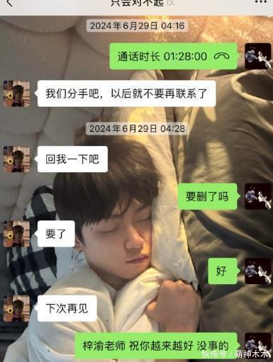 但和好没多久,剧集杀青之后,梓渝又正式向她提出分手。这次女生虽然不情愿,为了他的事业,依旧答应了。本来已经是过去式,结果随着梓渝走红,女方也被扒出来网暴,本就经历感情伤害的她,选择发文揭开真相。