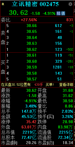 13:18 立讯精密午后跌幅扩大近5%。